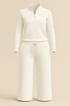 Pantalon assorti, coupe droite et fluide, avec taille ajustable pour un confort optimal.